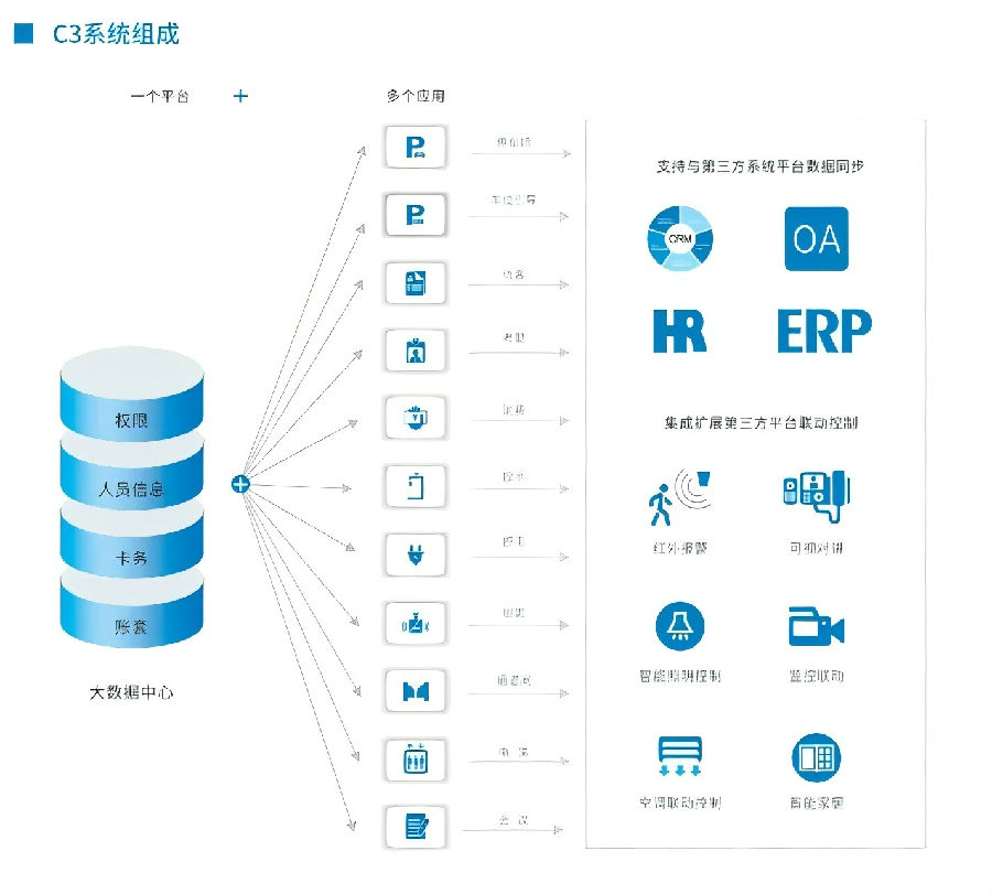 項(xiàng)目采用達(dá)實(shí)C3物聯(lián)網(wǎng)身份認(rèn)證平臺(tái),部署門禁點(diǎn)位 406 個(gè),系統(tǒng)采用C/S、B/S模式的多層體系,以人員權(quán)限管理、信息管理、卡務(wù)管理與賬套管理為基礎(chǔ)平臺(tái),實(shí)現(xiàn)小區(qū)內(nèi)部的門禁管理,未來更可輕松拓展考勤、停車場(chǎng)、信報(bào)箱、巡更管理、智能家居控制、綜合查詢等管理。