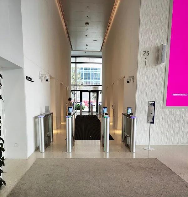 在進(jìn)出總部大樓的大廳中,采用人臉識(shí)別+快速通道閘方案,采用了達(dá)實(shí)自主研發(fā)的通道閘機(jī),針對(duì)業(yè)主商戶(hù)與訪(fǎng)客的進(jìn)出方式,保留了刷卡、人臉的混合認(rèn)證模式。完成從大廳到電梯實(shí)現(xiàn)快速通行。
