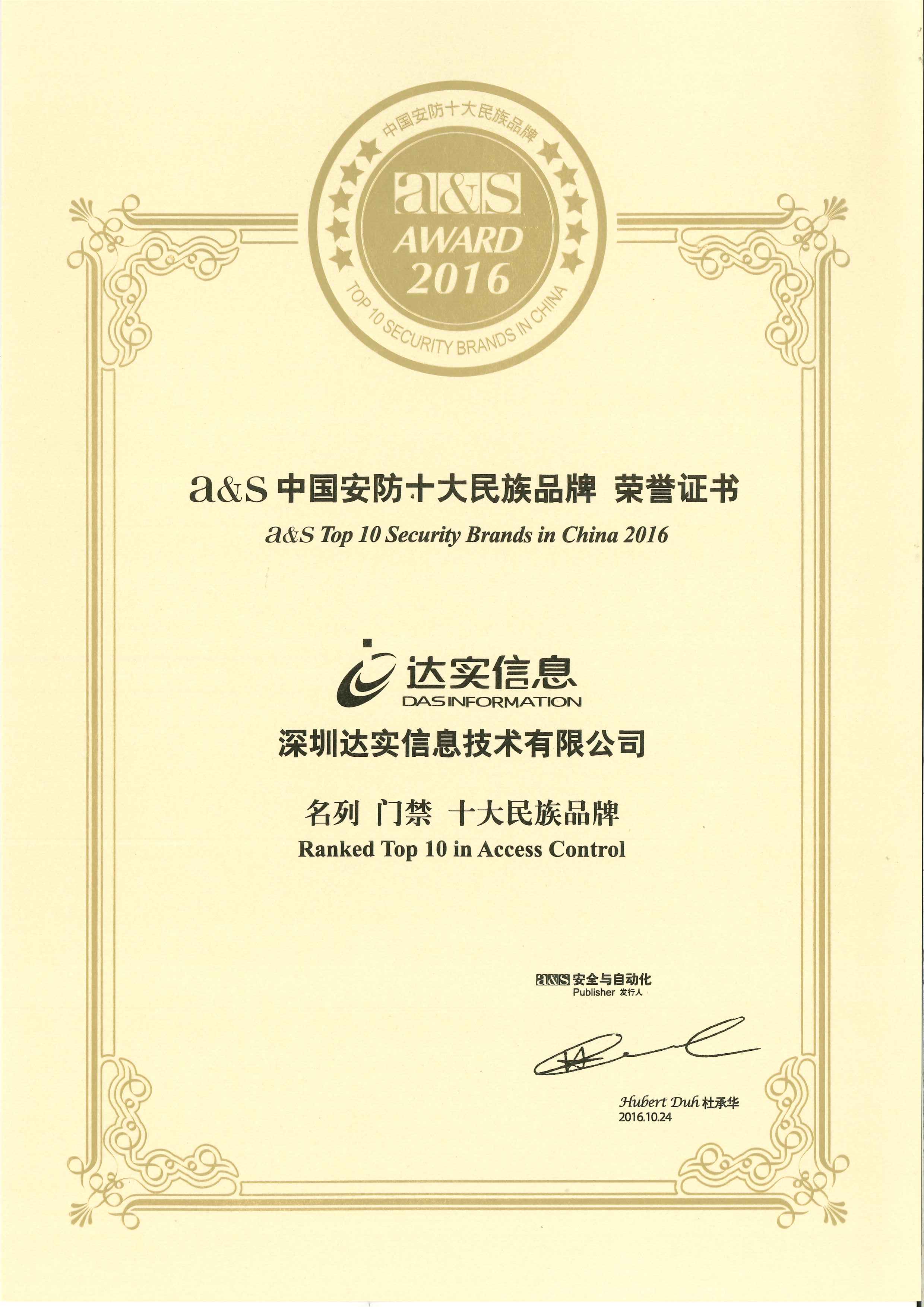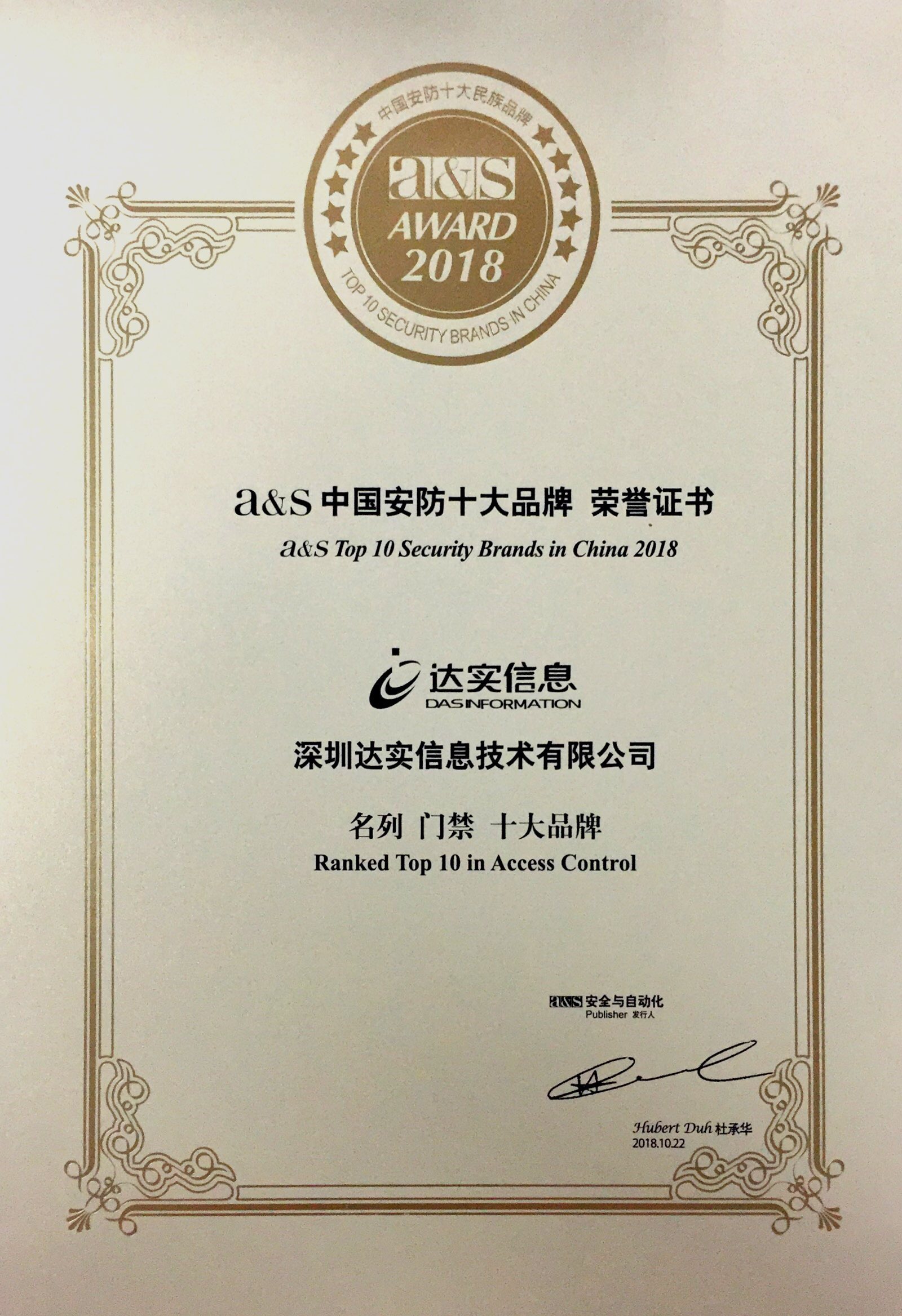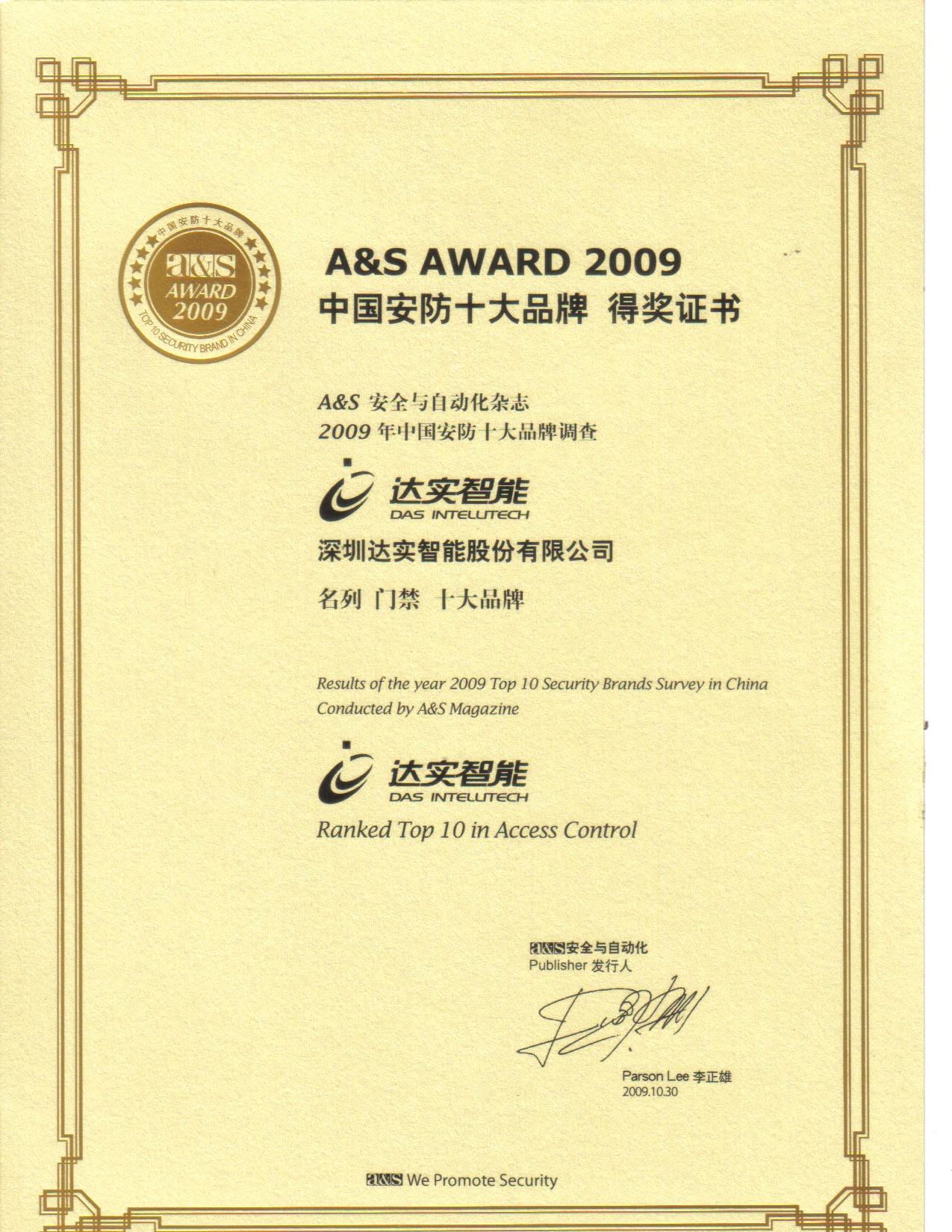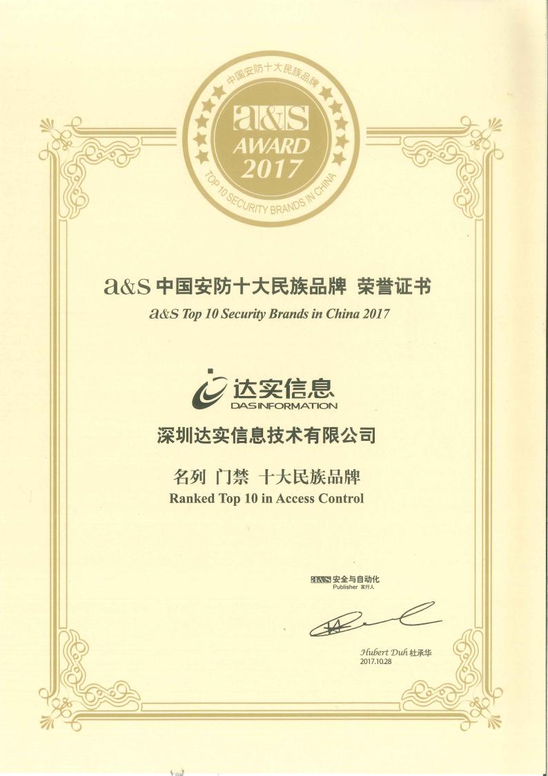 - 2009-2018A&S門禁十大品牌