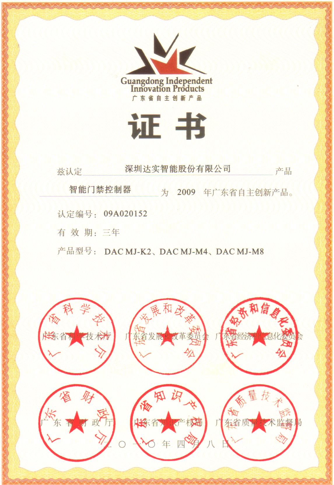 2009廣東省自主創(chuàng)新產(chǎn)品---智能門禁控制器