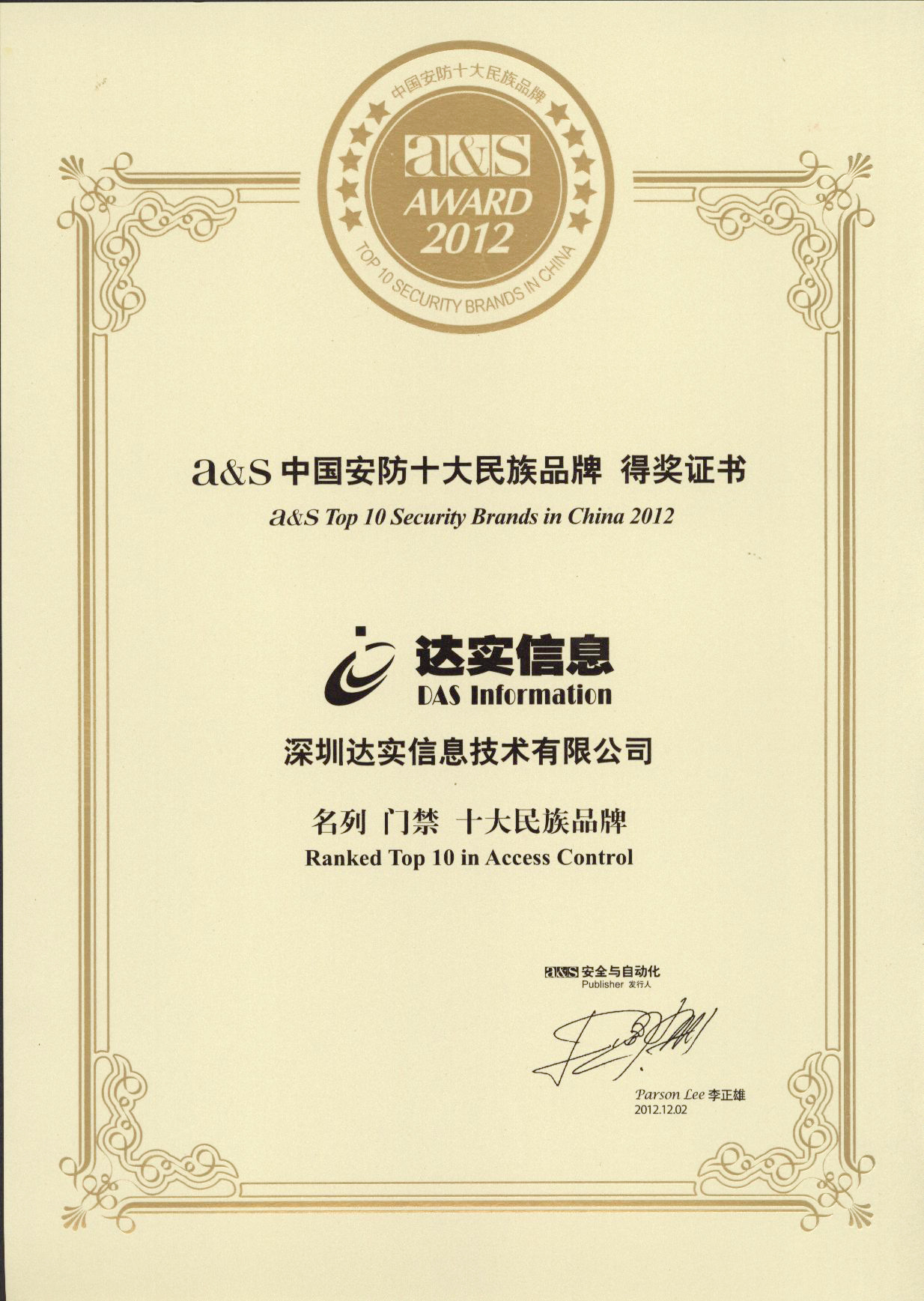 2012門禁十大民族品牌(A&S)