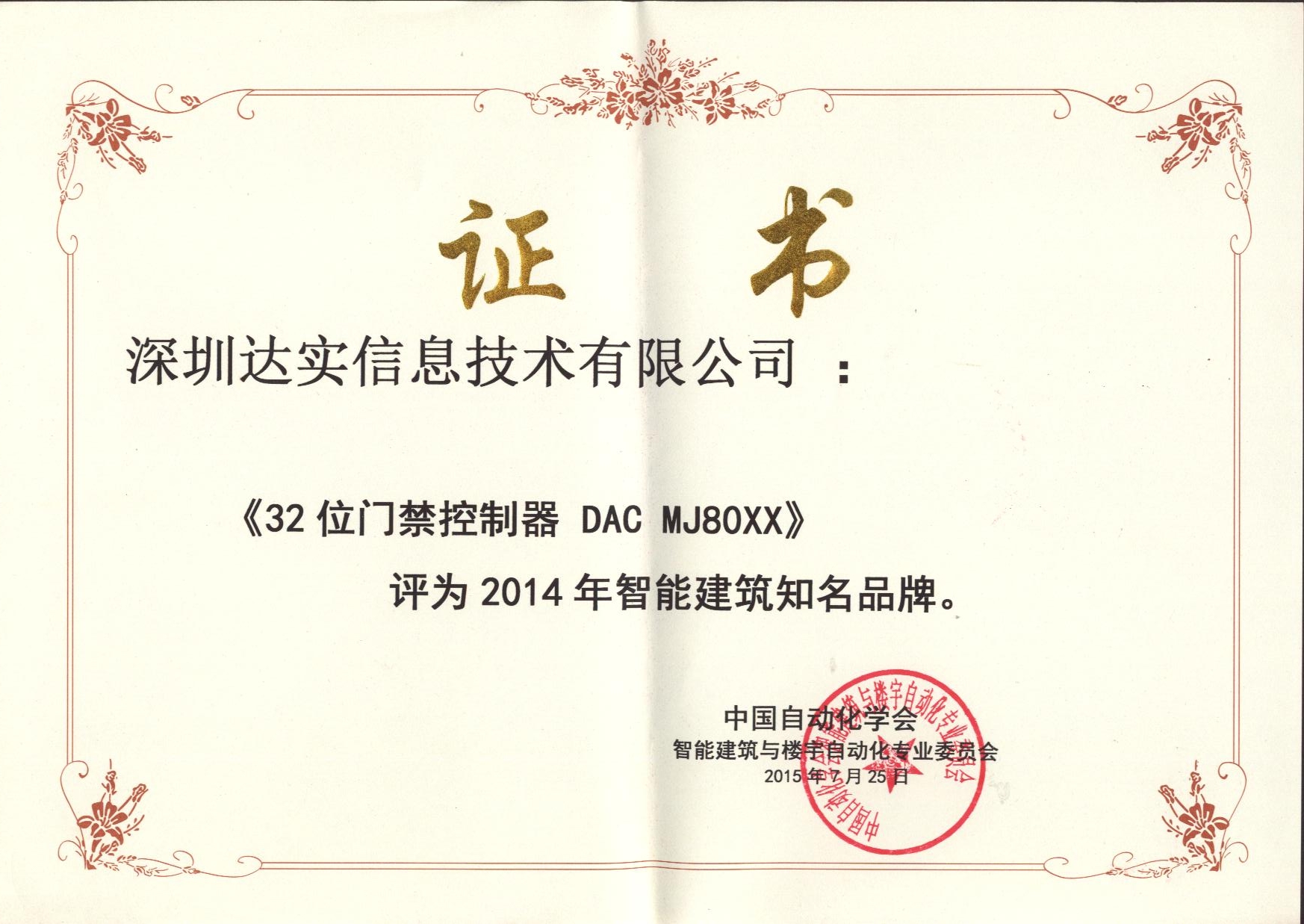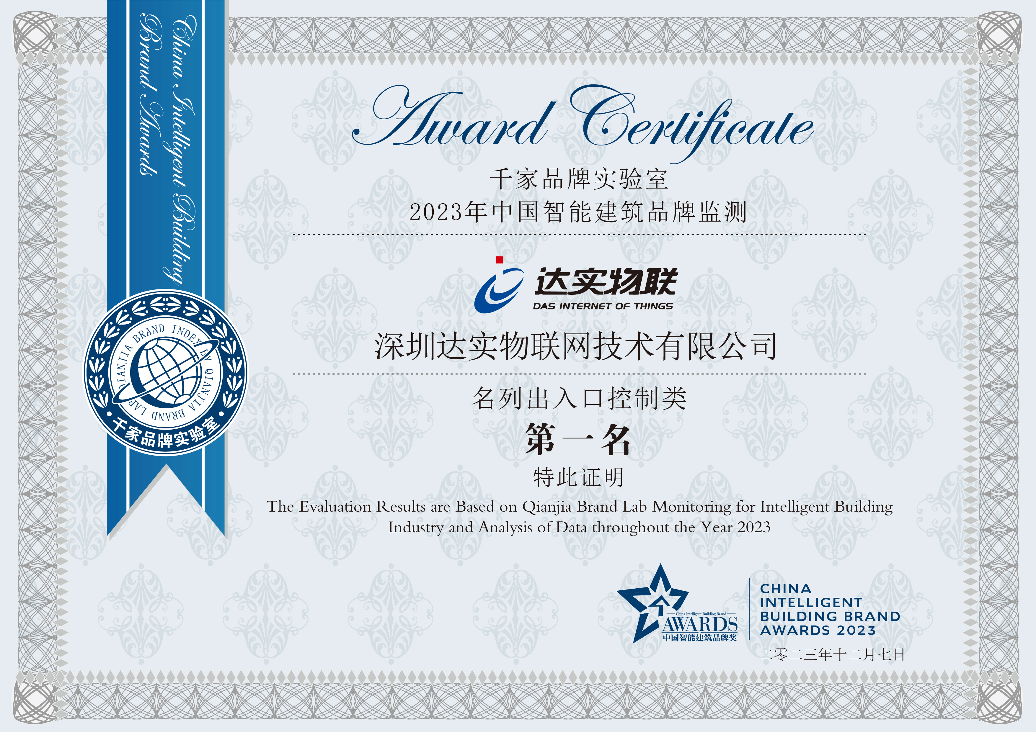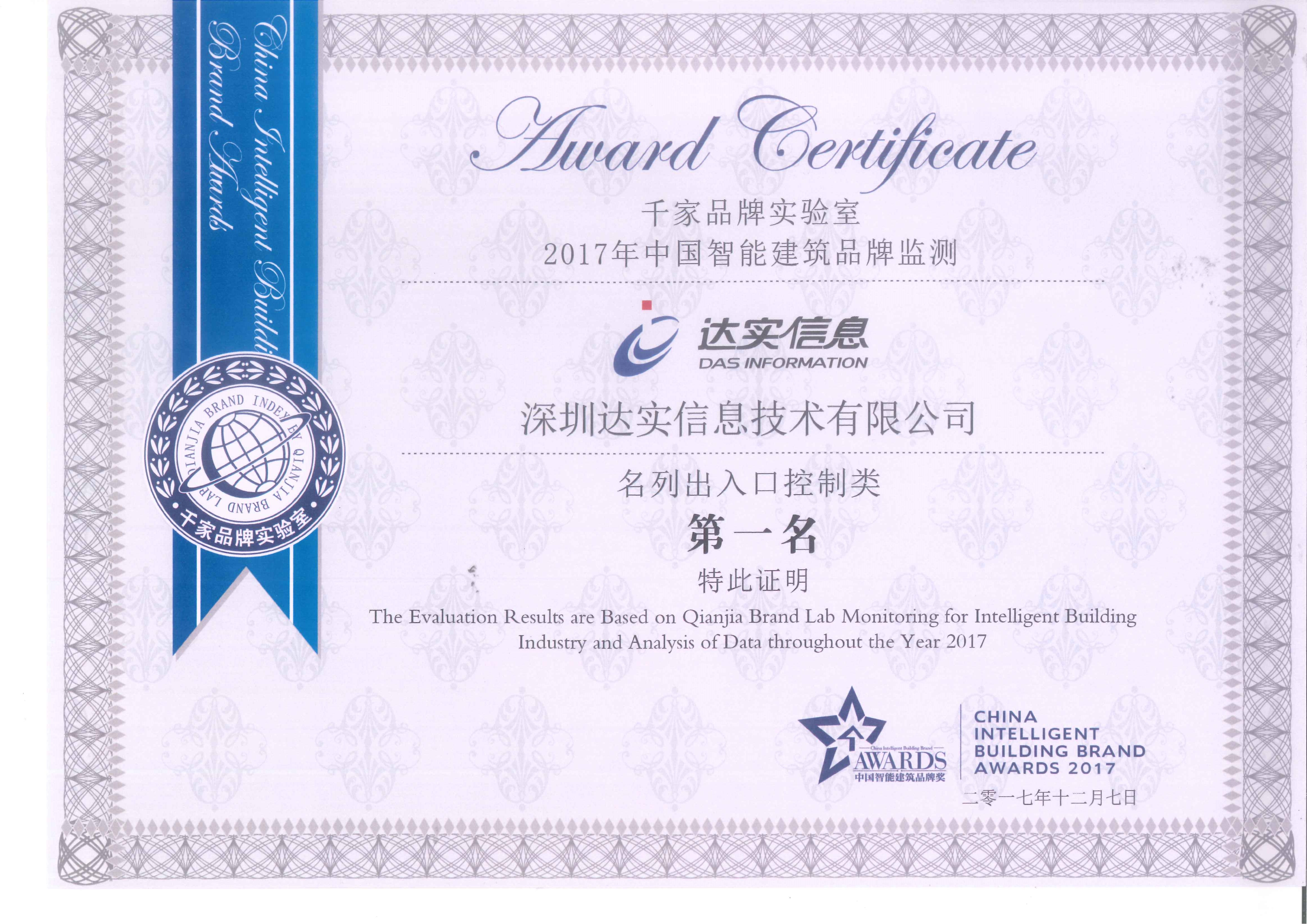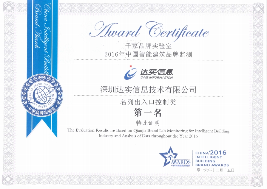 2008-2024年度,連續(xù)十七年榮獲中國智能建筑品牌監(jiān)測出入口控制類第一名