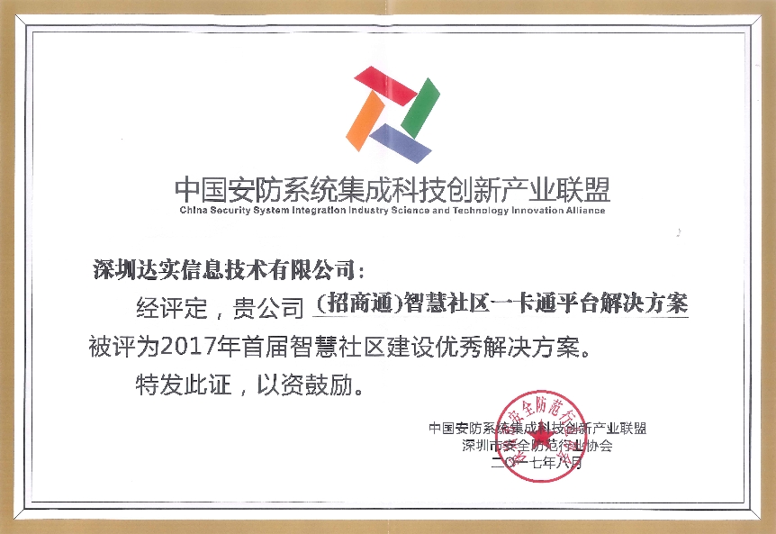 - 2017智慧社區(qū)優(yōu)秀解決方案獎
