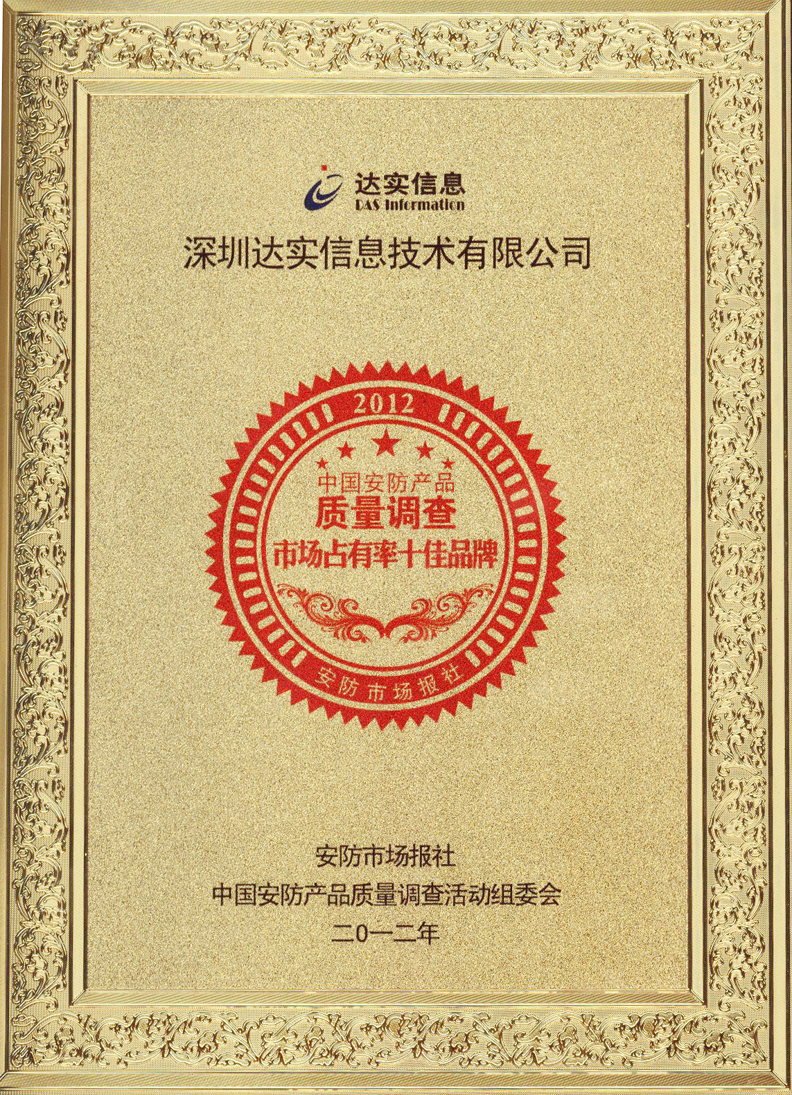 2012中國安防產(chǎn)品質(zhì)量調(diào)查市場占有率十佳品牌