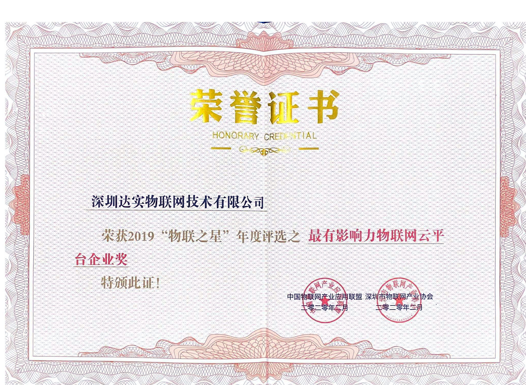 2019年最有影響力物聯(lián)網(wǎng)云平臺企業(yè)獎