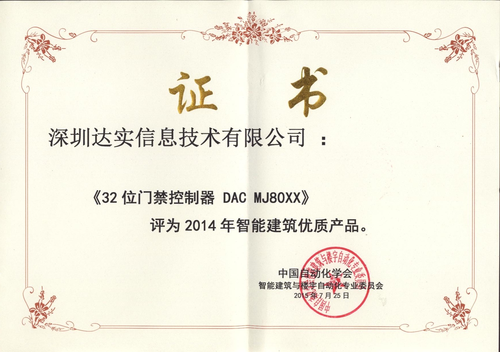 2008智能建筑優(yōu)質(zhì)產(chǎn)品(門禁控制器)