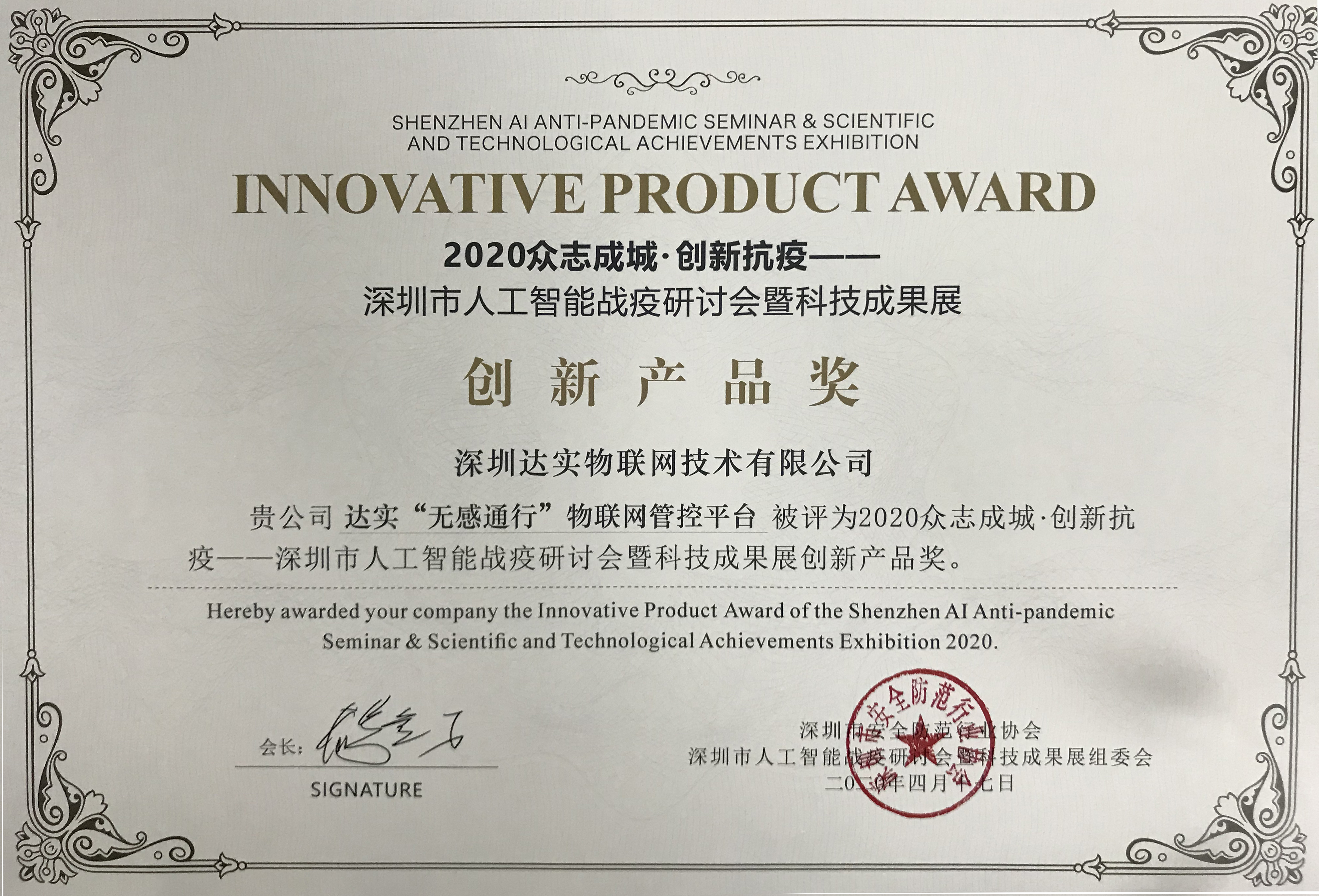 深圳市人工智能戰(zhàn)疫研討會暨科技成果展-創(chuàng)新技術(shù)獎