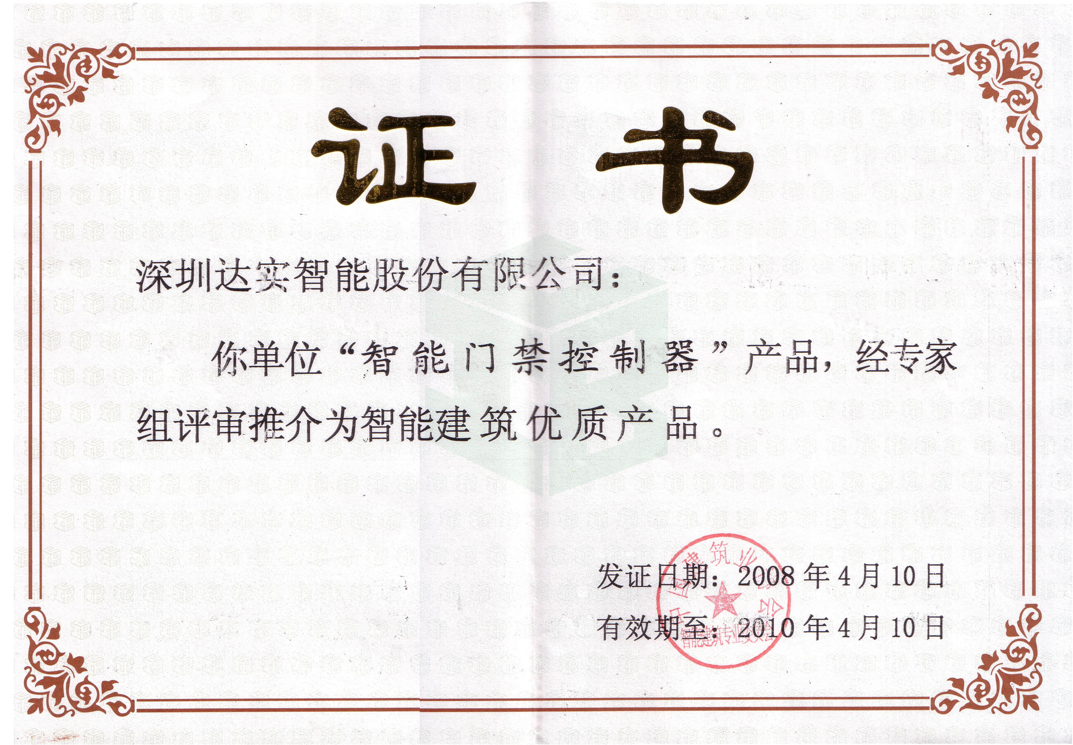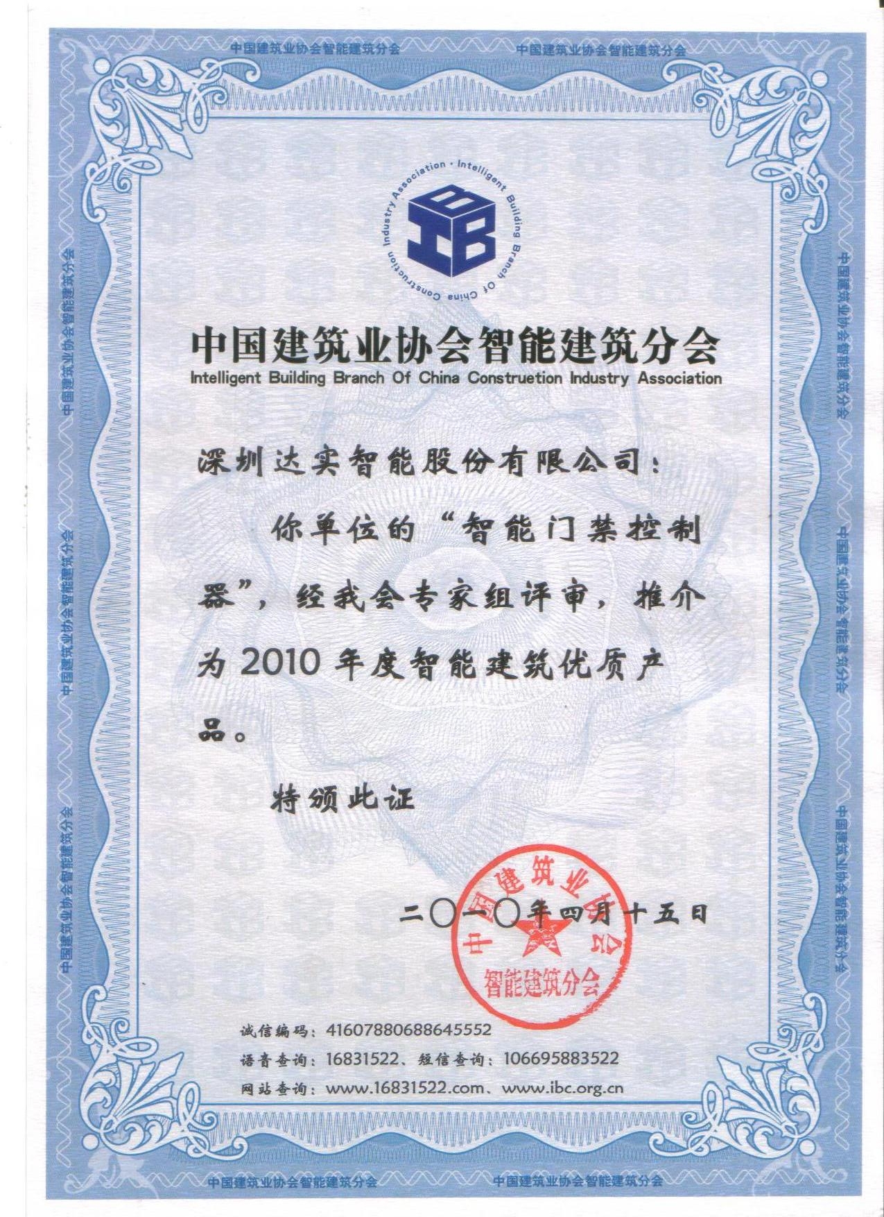 2010智能建筑優(yōu)質(zhì)產(chǎn)品(門禁控制器)