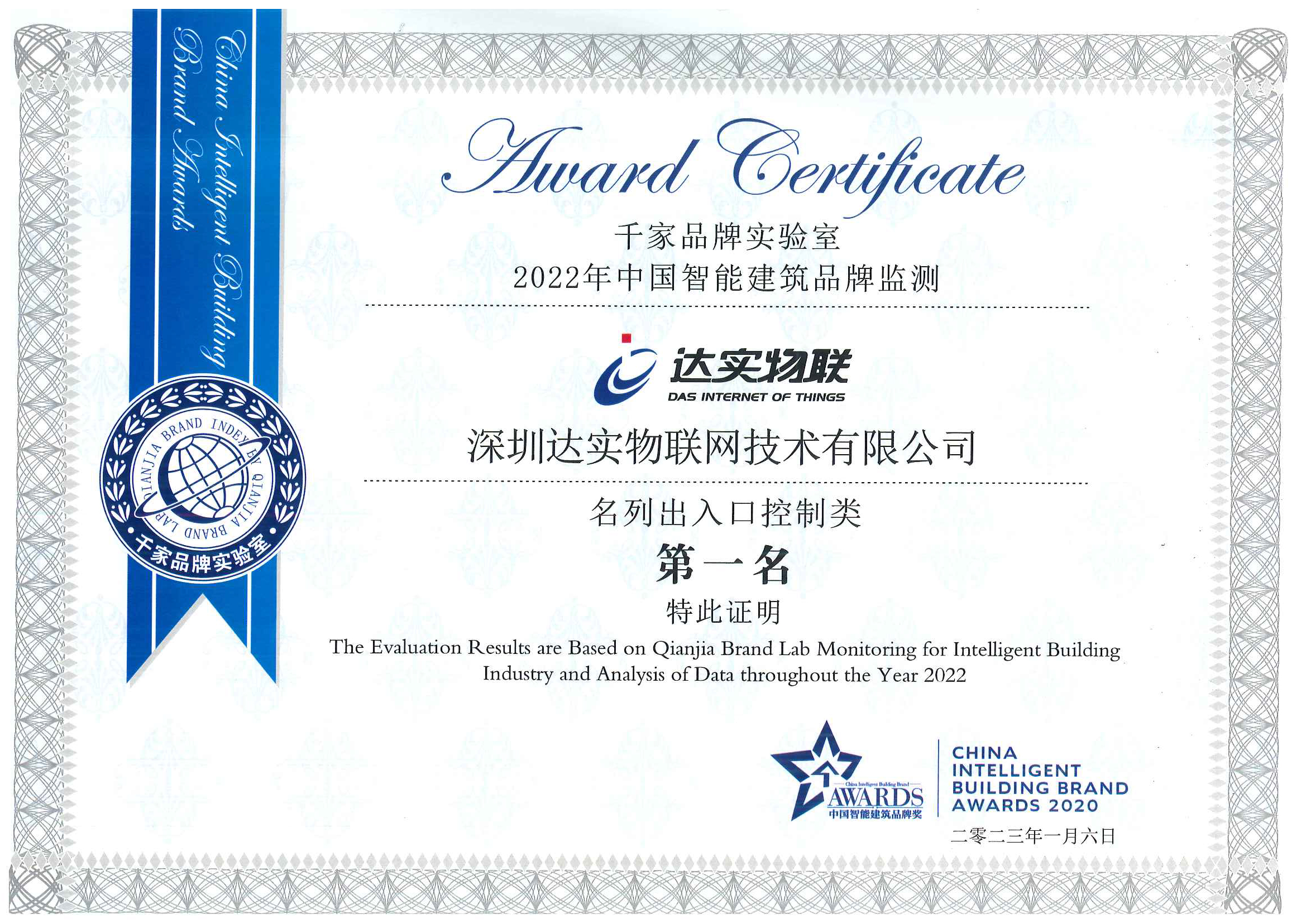 中國智能建筑品牌監(jiān)測出入口控制類第一名