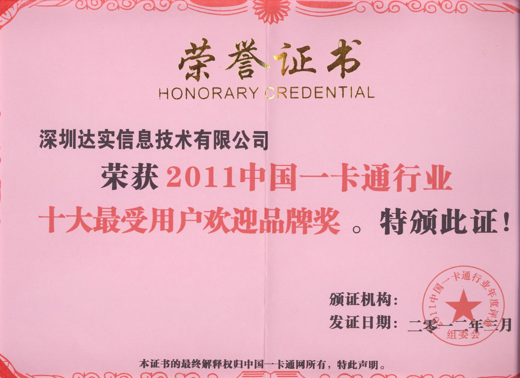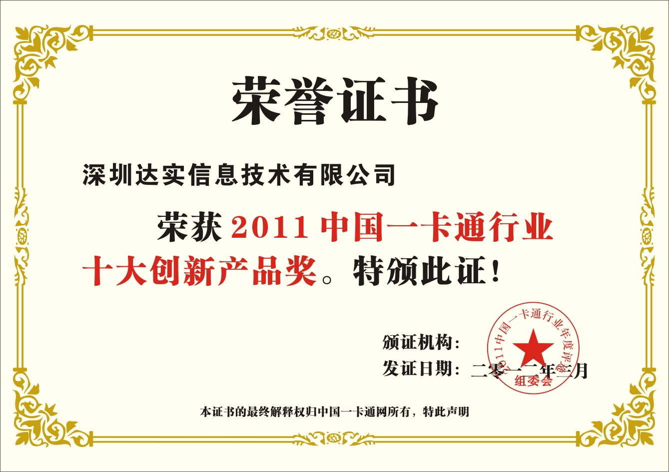 2011中國一卡通行業(yè)十大最受用戶歡迎品牌獎
