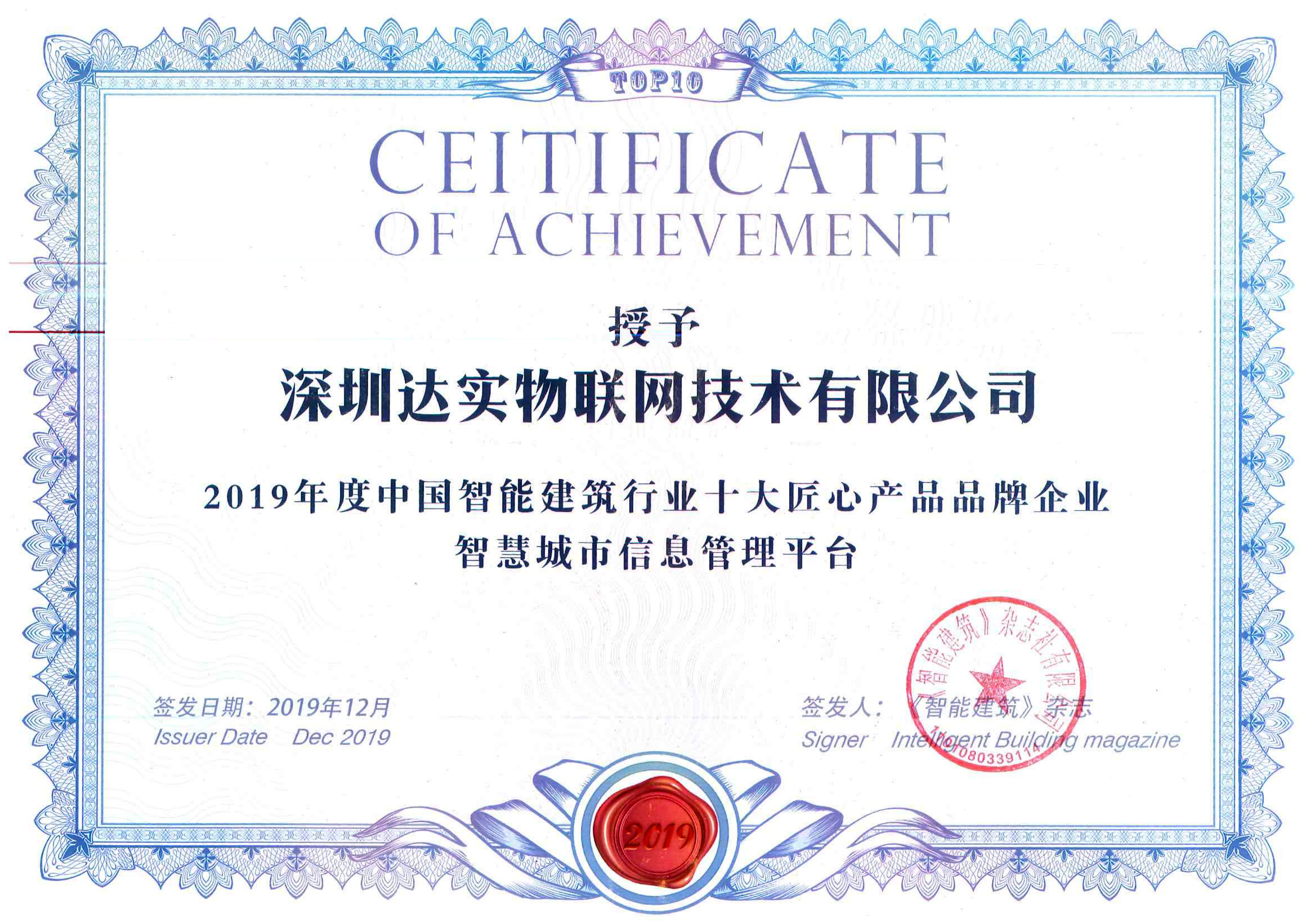 2019年度中國智能建筑行業(yè)匠心產(chǎn)品品牌企業(yè)-智慧城市信息管理平臺