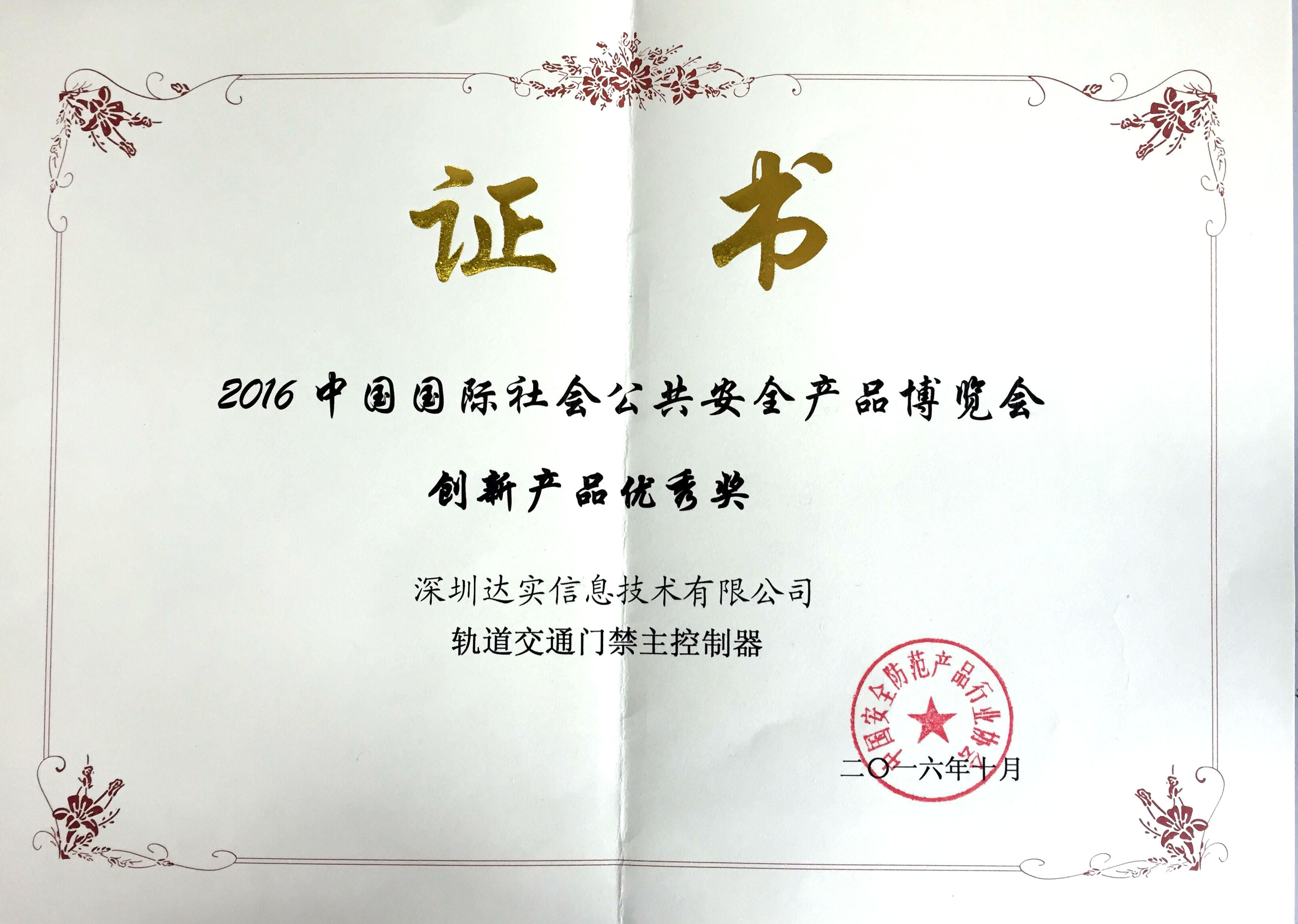 中國國際社會公共安全產(chǎn)品博覽會創(chuàng)新產(chǎn)品優(yōu)秀獎