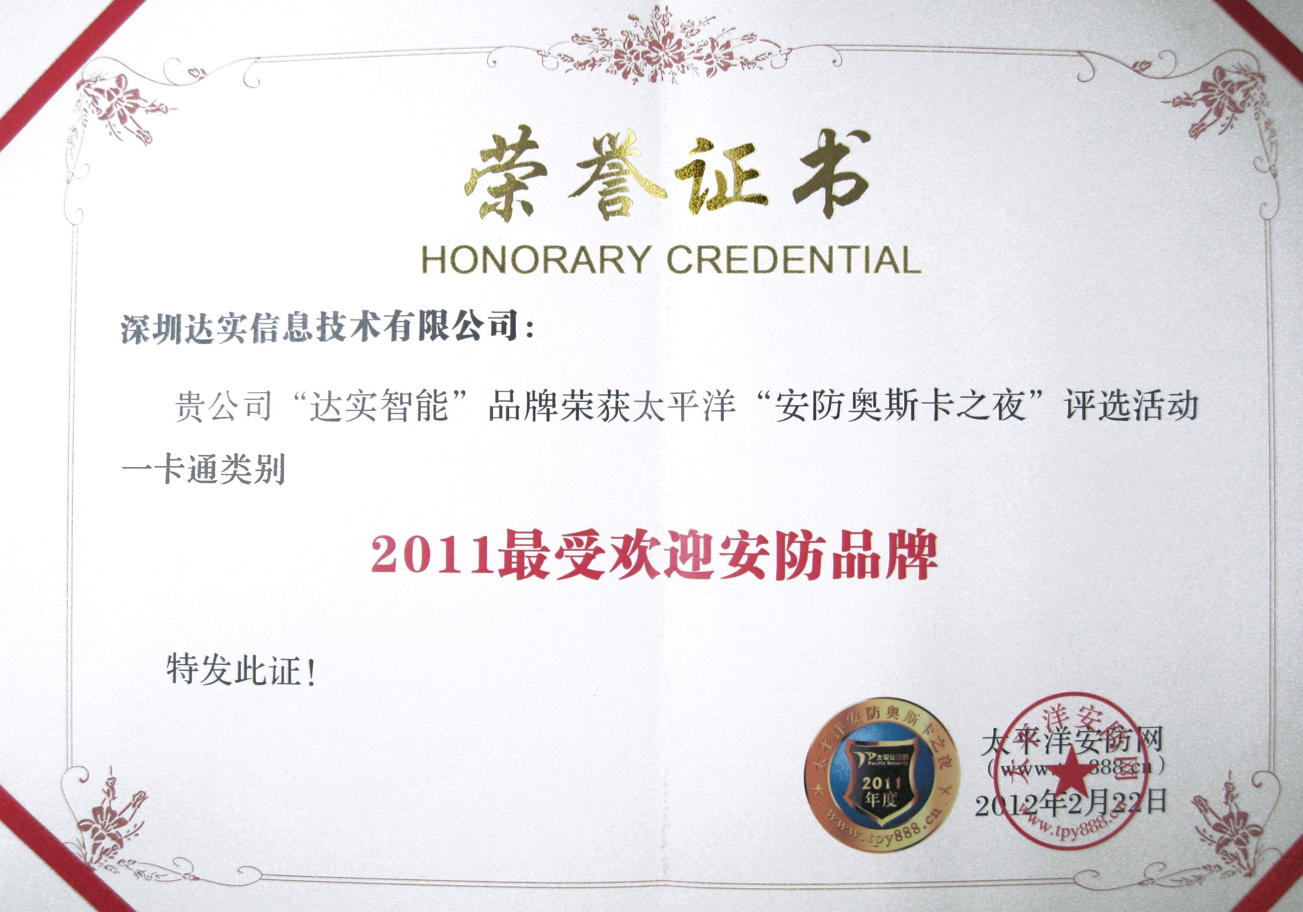 2011最受歡迎安防品牌(一卡通類別)