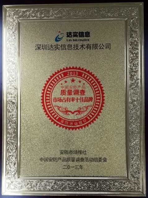 2013年中國安防產(chǎn)品質(zhì)量調(diào)查市場占有率十佳品牌