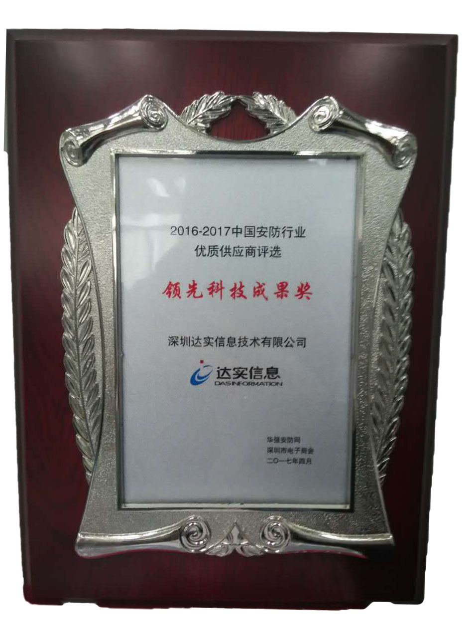 中國安防行業(yè)優(yōu)質(zhì)供應(yīng)商評選之領(lǐng)先科技成果獎