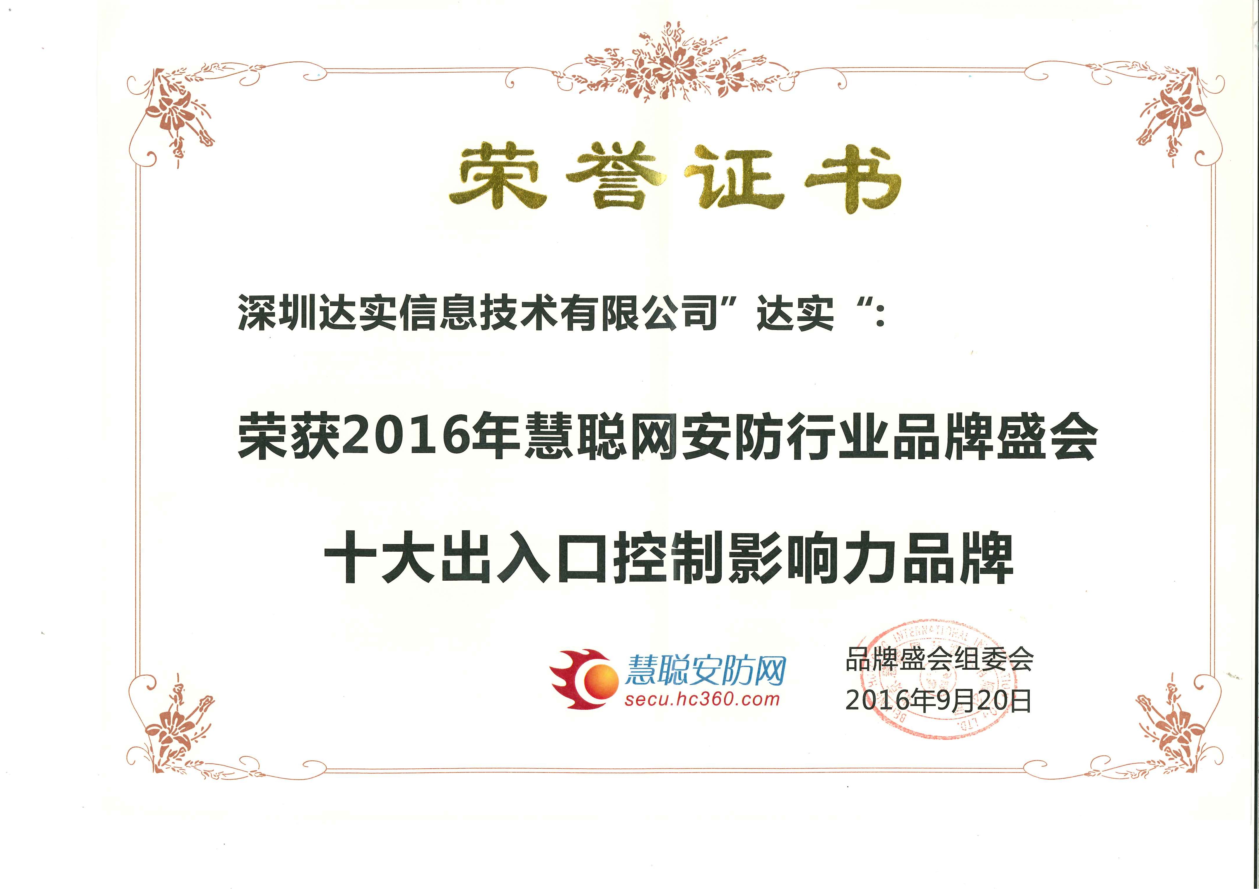 十大出入口控制影響力品牌