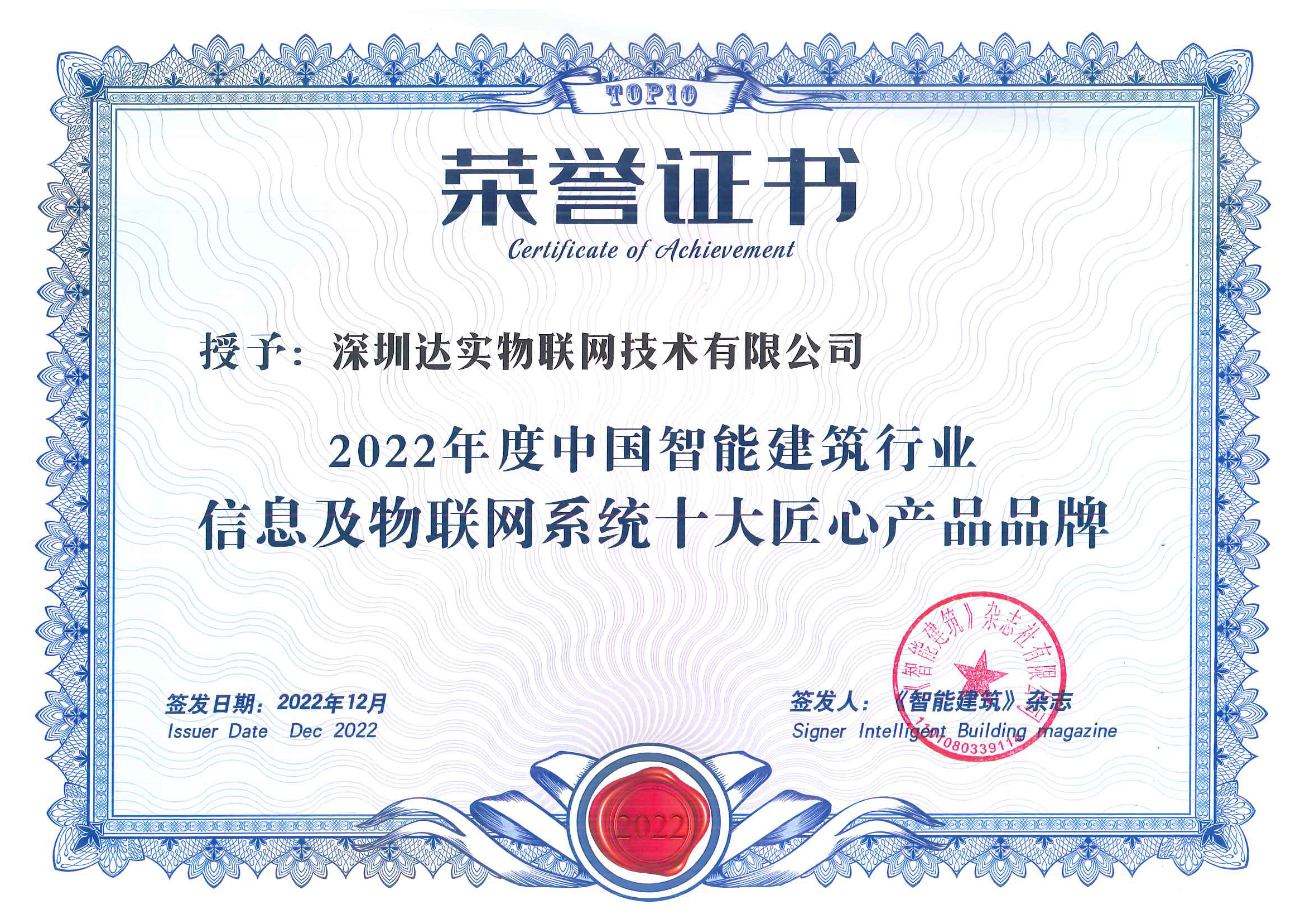 達實物聯(lián)憑借卓越的技術(shù)實力和創(chuàng)新能力,在物聯(lián)網(wǎng)領(lǐng)域榮獲多項行業(yè)殊榮。從平臺技術(shù)到核心產(chǎn)品,從解決方案到企業(yè)品牌,我們以專業(yè)和匠心贏得市場廣泛認可。