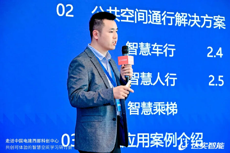 達實物聯(lián)成都分公司售前技術(shù)經(jīng)理劉磊帶來了《如何運用達實智慧終端實現(xiàn)智慧通行》的主題分享,從智慧人行、智慧車行、智慧餐廳、智慧乘梯、智慧宿管等辦公建筑的高頻場景,分享了達實在企業(yè)園區(qū)及辦公大樓的人性化通行服務(wù)。