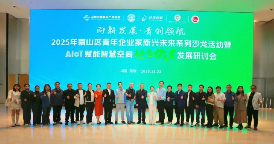 2025年11月21日,由共青團(tuán)深圳市南山區(qū)委員會(huì)指導(dǎo),深圳市物聯(lián)網(wǎng)產(chǎn)業(yè)協(xié)會(huì)主辦、深圳達(dá)實(shí)物聯(lián)網(wǎng)技術(shù)有限公司協(xié)辦的“2025年南山區(qū)青年企業(yè)家新興未來(lái)系列沙龍活動(dòng)暨AIoT賦能智慧空間綠色低碳發(fā)展研討會(huì)”于深圳達(dá)實(shí)大廈舉辦。
