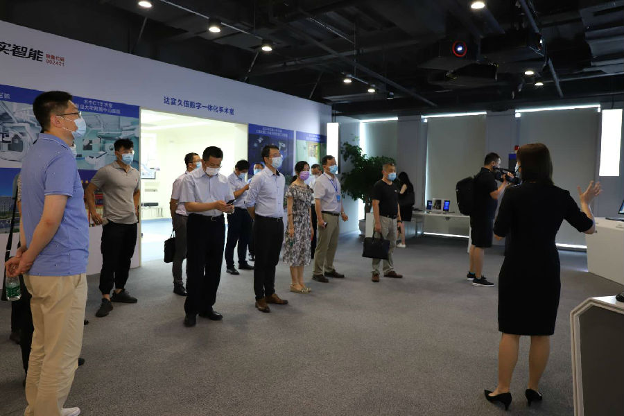 參觀期間參訪團(tuán)來到智慧醫(yī)療展廳對達(dá)實智慧醫(yī)院整體建設(shè)方案,基于物聯(lián)網(wǎng)技術(shù)與信息化平臺,實現(xiàn)了醫(yī)院內(nèi)物與物、物與人以及人與人的連接,全面提升醫(yī)院運(yùn)營效率、降低醫(yī)院能耗,讓醫(yī)院真正實現(xiàn)可感知、可執(zhí)行、會思考、能成長。并以淮南市智慧醫(yī)療PPP項目為例,向考察訪團(tuán)分享了達(dá)實在智慧醫(yī)療建設(shè)領(lǐng)域?qū)崿F(xiàn)的技術(shù)創(chuàng)新與實際成果。
