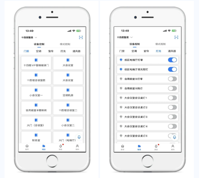 通過手機(jī)APP進(jìn)行門禁、燈光、窗簾、空調(diào)、投影等全場(chǎng)景智能控制,開啟智慧辦公體驗(yàn)。根據(jù)手機(jī)端定位,進(jìn)行移動(dòng)定位考勤,并進(jìn)行任意時(shí)間段考勤數(shù)據(jù)查詢。