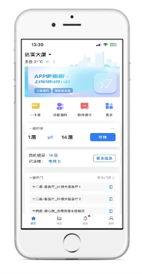 通過手機(jī)APP選擇樓層進(jìn)行呼梯,全程無需觸摸派梯鍵及電梯按鍵。