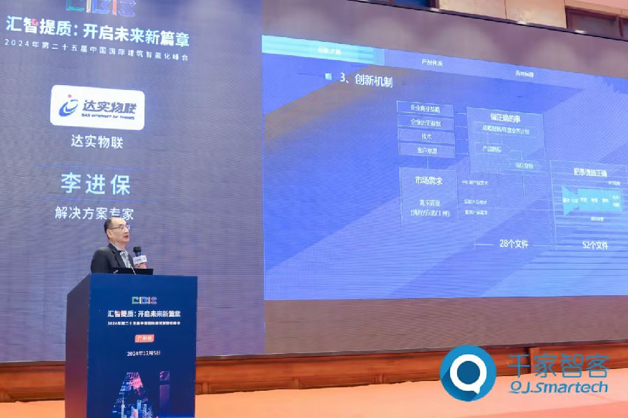 在同期舉辦的第25屆CIBIS建筑智能化峰會(huì)上,達(dá)實(shí)首席技術(shù)專家李進(jìn)保受邀發(fā)表“以用戶為中心的產(chǎn)品和服務(wù)創(chuàng)新”主題演講。
