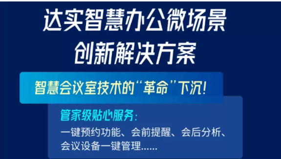 達(dá)實(shí)會(huì)議多功能屏集門禁、空調(diào)、照明、信息發(fā)布等于一體,集成人臉識(shí)別、操作和信息發(fā)布于一臺(tái)終端;基于動(dòng)態(tài)活體人臉識(shí)別算法檢測,同時(shí)可實(shí)現(xiàn)人員身份驗(yàn)證同時(shí)實(shí)現(xiàn)考勤、會(huì)議簽到等功能;統(tǒng)一控制面板風(fēng)格,使裝修效果最優(yōu),一鍵操作,調(diào)節(jié)辦公室內(nèi)設(shè)備,并且可即時(shí)同步會(huì)議室預(yù)訂信息,實(shí)時(shí)顯示會(huì)議室使用狀態(tài)。
