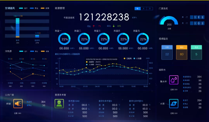 管理節(jié)能方面:達(dá)實(shí)大廈采用達(dá)實(shí)智能自主研發(fā)的AIoT物聯(lián)網(wǎng)智能管控平臺(tái),連通并集中管控大廈內(nèi)近20000多個(gè)物理設(shè)備,近130平超大LED屏實(shí)時(shí)呈現(xiàn)所有設(shè)備運(yùn)行狀態(tài)及能耗數(shù)據(jù),實(shí)現(xiàn)可視化運(yùn)維,讓節(jié)能“看得見(jiàn)”,通過(guò)集中管控和可視化運(yùn)維,達(dá)到能耗降低25%,物業(yè)人員減少25%的效果。