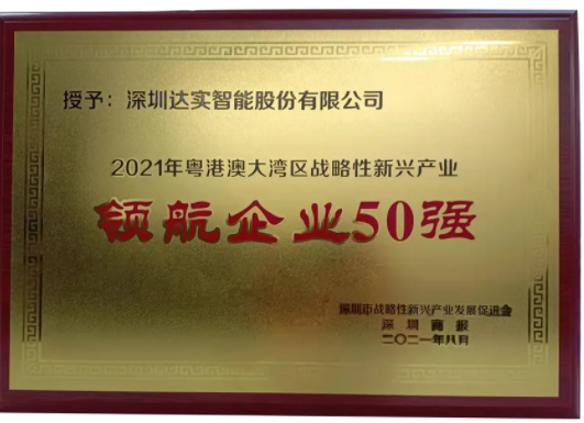 達(dá)實(shí)智能榮獲2021年粵港澳大灣區(qū)戰(zhàn)略性新興產(chǎn)業(yè)領(lǐng)航企業(yè)50強(qiáng)
