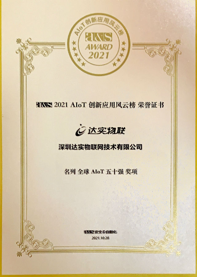 2021 AIoT創(chuàng)新應(yīng)用風(fēng)云榜今日揭曉,達(dá)實物聯(lián)網(wǎng)名列全球五十強(qiáng)