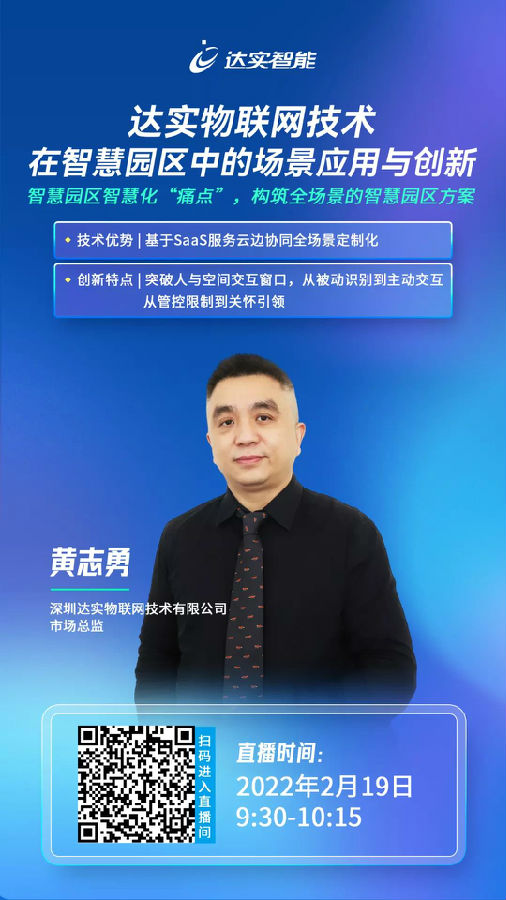 2月19日周六上午9:30-10:15,達(dá)實(shí)直播間新一期分享達(dá)實(shí)物聯(lián)網(wǎng)技術(shù)在智慧園區(qū)中的場(chǎng)景應(yīng)用與創(chuàng)新與您不見(jiàn)不散
