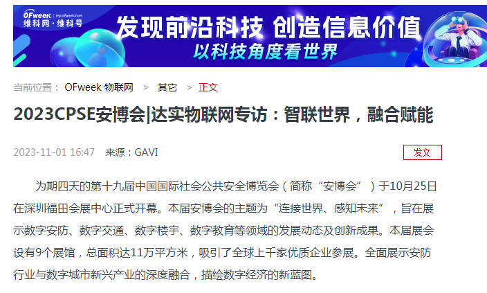 以上是OFweek維科網(wǎng)對(duì)達(dá)實(shí)物聯(lián)市場(chǎng)總監(jiān)黃志勇的專訪內(nèi)容。未來,OFweek維科網(wǎng)將持續(xù)關(guān)注達(dá)實(shí)物聯(lián)的動(dòng)態(tài)和趨勢(shì),深入挖掘物聯(lián)網(wǎng)領(lǐng)域的技術(shù)創(chuàng)新和應(yīng)用實(shí)踐,為讀者提供更多有價(jià)值的信息和報(bào)道。