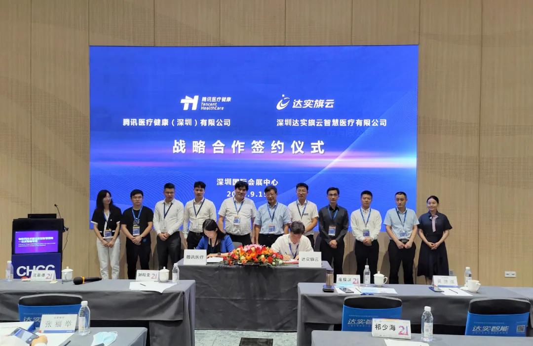 大會第一天,在達(dá)實智能專場,深圳達(dá)實智能股份有限公司控股子公司深圳達(dá)實旗云智慧醫(yī)療有限公司與騰訊醫(yī)療健康(深圳)有限公司簽署戰(zhàn)略合作協(xié)議,雙方將圍繞健康城市、區(qū)域醫(yī)療、智慧醫(yī)院等領(lǐng)域開展進(jìn)一步的合作,共同探索醫(yī)療互聯(lián)網(wǎng)、數(shù)字健康的新路徑、新模式,促進(jìn)行業(yè)融合與創(chuàng)新。