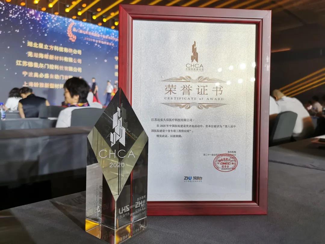▲ 達(dá)實智能榮膺第八屆中國醫(yī)院建設(shè)十佳運營服務(wù)供應(yīng)商